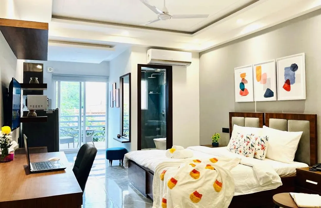 このホテルはグルガウンに位置し、Micromax Moulsari Avenue地下鉄駅少し離れたです。 グルガウンのBluo Studio1 Dlf Cybercity - Balcony, Gym Tt, Liftから2.2キロメートルのDlf サイバー・ハブまで行くことができます。 宿泊施設から自動車で15分くらいのところにSanskriti Kendraもあります。 遠方からお越しの方には、インディラ ガンジー 国際空港まで車で20分です。
